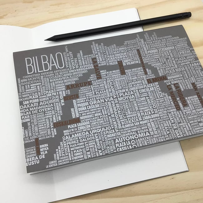 Notebook from our "Bilbao Street Map" collection. A map of Bilbao designed with the names of its streets and bridges in different typographies.